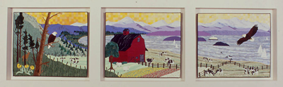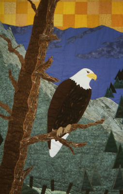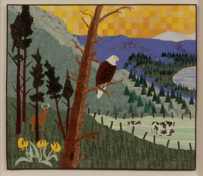 View Left Pane | View Eagle | View Middle Panel View Barn | View Right Panel | View Soaring Eagle View Cows in the Field | View this quilt as installed